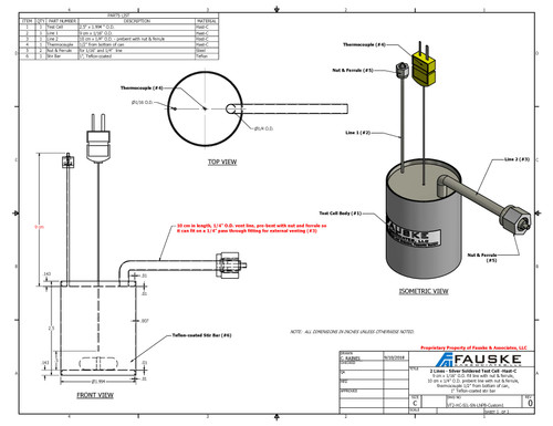 Description Silver-Soldered VSP2 Test Cell, 2 lines, Hastelloy 9 cm x 1/16" O.D. line with nut & ferrule, 10 cm x 1/4" O.D. line, prebent with nut & ferrule, thermocouple, 1" Teflon-coated stir bar.